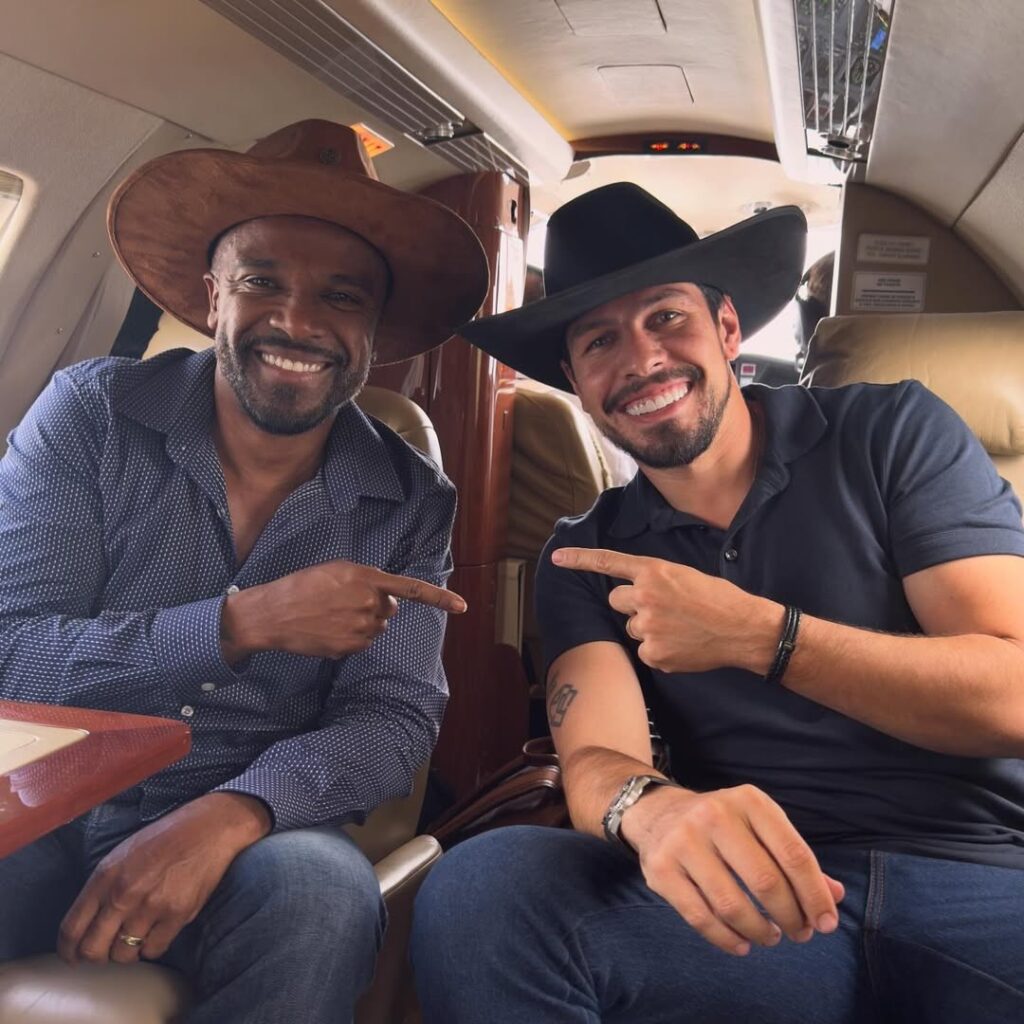 Foto do Corretor de imóveis, Bruno Leonardo, com o cantor após aquisição do imóvel