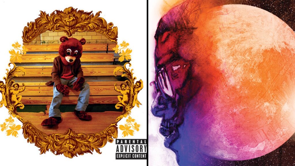 Montagem das capas dos albuns ‘The College Dropout’ de Kanye West e ‘Man On The Moon The End Of Day’ de Kid Cudi