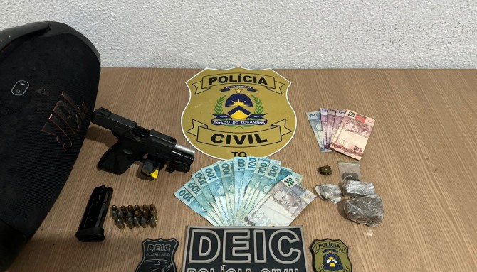 Com o casal, foram apreendidos uma pistola 9mm com numeração raspada, munições, porções de drogas e dinheiro em espécie. Eles são investigados pelos crimes de organização criminosa, tráfico de drogas e associação para o tráfico.