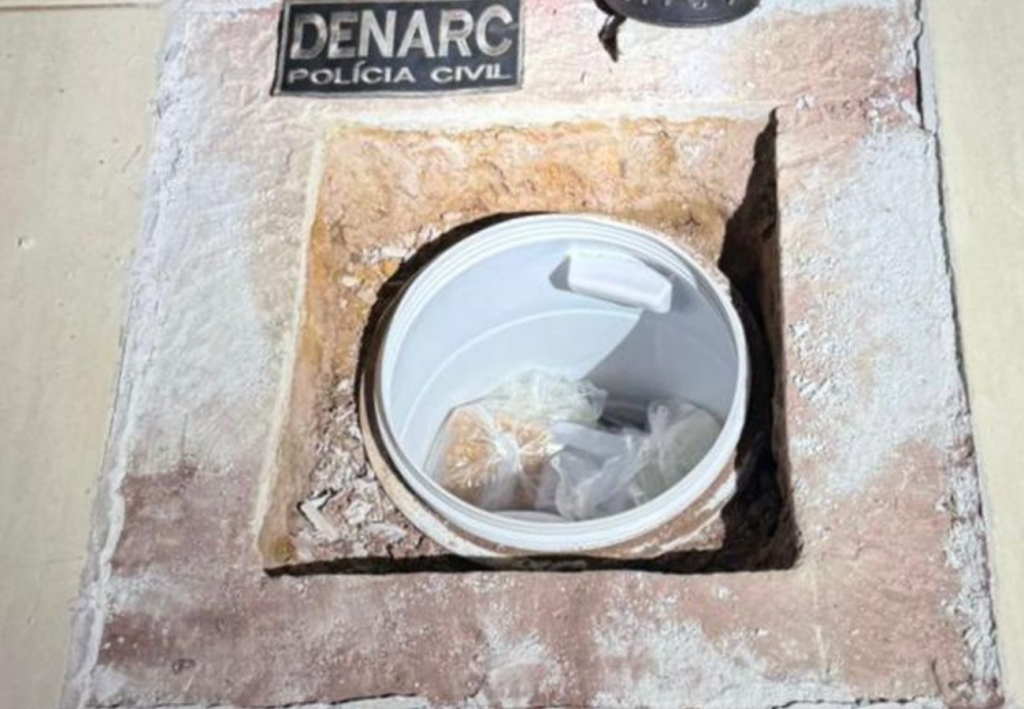 A partir desse indício, os policiais fizeram buscas na casa e encontraram uma peça de cerâmica que havia sido instalada recentemente embaixo de uma cama. Era embaixo dela que estava estava o tonel com crack, cocaína e outros insumos. Todo o material foi apreendido pela equipe da Denarc.