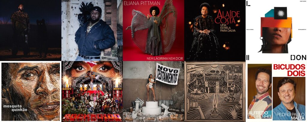 Capas de álbuns de artistas brasileiros que se destacaram na produção fonográfica de 2025